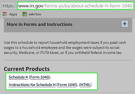Complete Schedule H with your annual tax return. When you file your taxes each year, fill out and attach Schedule H to calculate your tax liabilities for your household employees. If you use tax preparation software, the schedule will be completed based on your answers to simple questions. You can download the Schedule H form and instructions at https://www.irs.gov/forms-pubs/about-schedule-h-form-1040. If you're not required to file Form 1040, but you still owe taxes for a household employee, you can sign and file Schedule H separately.