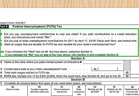 Report your contributions to your state's unemployment fund. If you pay all required contributions to your state unemployment fund by the yearly tax deadline, you can use those payments as a credit against your FUTA taxes. Provided all your contributions were made by the deadline, you can take a credit of up to 5.4 percent against the FUTA tax. This gives you an effective rate of 0.6 percent for FUTA taxes to be paid with your annual return. Your credit amount may be reduced if you are in a credit reduction state. These are states identified by the U.S. Department of Labor that haven't repaid money borrowed from the federal government to pay unemployment benefits. These states change every year, and are listed in the instructions for Schedule H.