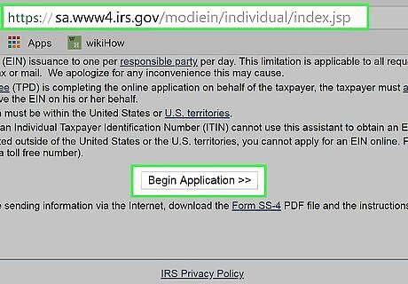 Request an employer identification number (EIN). You may already pay individual taxes under your Social Security number. However, if you're going to withhold and pay taxes for an employee, you need a separate EIN. The easiest way to get an EIN is online. Provide some basic information and your EIN will be issued immediately. Visit the IRS website at https://sa.www4.irs.gov/modiein/individual/index.jsp to get started.