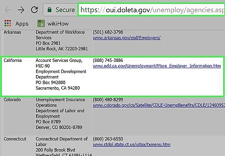 Contact your state's unemployment tax agency. If you have a household employee and are paying federal taxes on them, you are likely also responsible for making contributions to your state's unemployment fund. To determine your liability, contact your state's unemployment tax agency. The U.S. Department of Labor has a list of each state's unemployment tax agency with links to their websites at https://oui.doleta.gov/unemploy/agencies.asp.