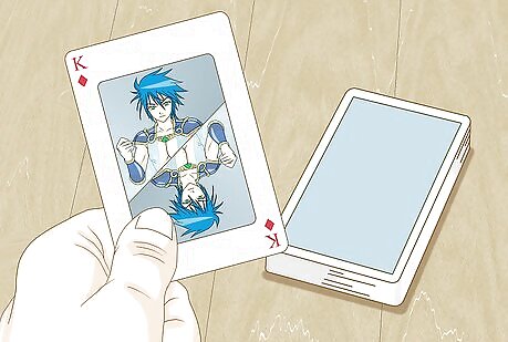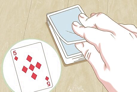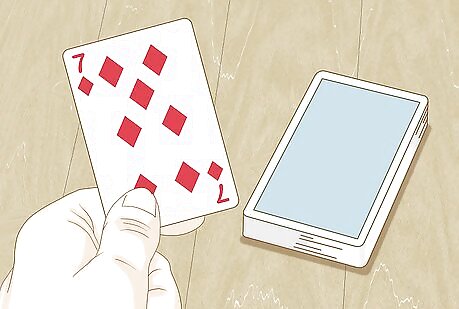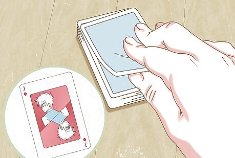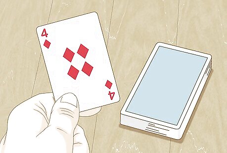 Choose someone to draw the first card. Select someone randomly or let the group decide who gets to play first. Next, ask this person to draw a card from the card wreath around the cup. Don't let them peek at the cards before choosing.