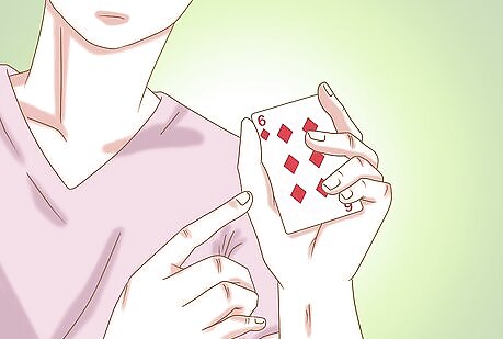 Complete the action associated with the card. Examine the card to determine what action the person needs to take. Some cards require the entire group to participate, while others only need one person. For example, if the person draws a 6, all of the men at the table have to take a drink. If the person draws a 4, all of the women at the table have to take a drink.