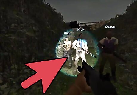 Watch out for Infected. The Infected are normally found walking and are quite weak most of the time, but in huge numbers the Infected are the most deadly foe in the entire game. They are provoked by physical combat, gunfire, use of flashlight, and appearing in their line of sight. When informed of your presence, they will be fast and agile but still can be taken down easily. The Infected can swarm in massive numbers, even 100 at a time, which encourages you and your buddies (be they AI or human) to stick together. In these situations, the Infected can be difficult to cope with as they usually will come from 2 or 3 different directions. There are a number of different ways to stop the infected, but the best are pipe bombs, Molotovs and fortifying a position and holding the Infected back. A large horde will sometimes be preceded by dramatic music and the distant sound of screaming.
