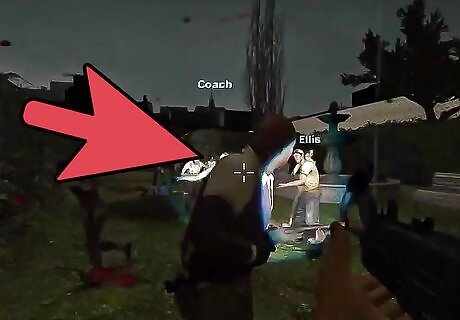 Use Melee Attacks. All items and weapons can be used to bash the infected. Bashing knocks infected back, giving you time to aim or reload, or buying you time if swamped by the Horde. It can be used to knock a hunter off a pinned ally chest, and bashing an ally who is caught by a smoker's tongue will free them. It can also be used to get the attention of a Tank attacking a friend. Melee attack should also be used to push a Boomer back when it is attacking so that the survivors are not slimed when the Boomer is killed.