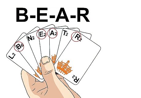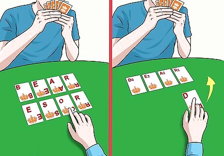 Recognize the two situations the next player may make. Players can build new words of at least three or more letters in their hand - called a meld - or they may "capture" the word, adding letters onto another players letters, or rearranging the letters to form a different word. But you should avoid plurals, prefixes, suffixes, as these aren't permitted. When capturing, only significant word change additions can be laid out in front of the player. "Bear" can't become bears, but "bear" can become "beard" (assuming the player has these cards in their hand). Don't try rearranging the letters in the other word to form a new word. Players call out their scores, as the word makes it's way around the table, and even if you weren't the one who began the word, the capturing player will receive points for every letter in the word. Players may only meld or capture or both one word during their turn. Avoid capturing your own word. It isn't permitted. Instead, form uncaptured words by placing them face-down into a discard pile, and score these words upon one point per card from this pile.