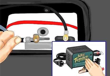 Place battery on a trickle charger (newer vehicles that require a constant source of power). Most newer vehicles are equipped with advanced computer systems, which require constant power. Otherwise, they'll have to be completely reprogrammed.