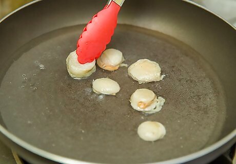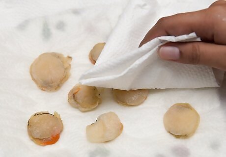 Check each scallop for skin tags on the side and remove them by pinching the tag off using your thumb and forefinger. Most of these tags are removed during the harvest, so there may not be any on some of the scallops.