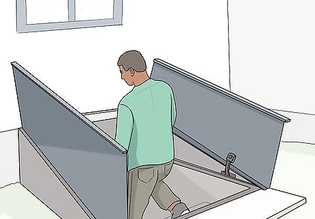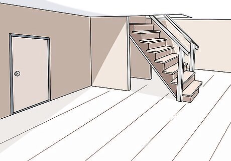 Designate a safe space on the lowest level of your home in an interior room. If you have a basement, plan to go there. If not, look for a space in your home on the lowest floor away from outside walls, doors, and windows. A hallway or bathroom with no windows works well. If you live in an apartment, ask your landlord where you should go in case of a tornado. If you choose a bathroom, be prepared to get into the tub or shower in case of a tornado. For extra protection, cover yourself with a mattress. If you live in a mobile home, identify a nearby safe building or space you can get to quickly. Do not stay in a mobile home during a tornado as it's not a solid structure and could be blown apart. Check for a safe room or space in places you visit a lot, like the homes of friends and family and your workplace.