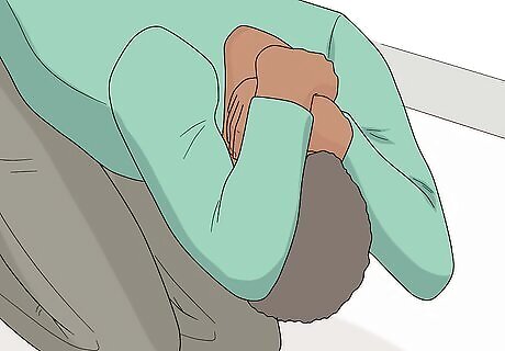 Protect your head and neck. No matter where you are, protect your head and neck however you can. Use your hands and arms to cover your head and neck if you don't have anything handy. If possible, use a blanket or coat to protect yourself from debris, or a pillow to cushion yourself if you have one handy. Shield any children or pets you have with you with your body. Then cover your own head and neck.