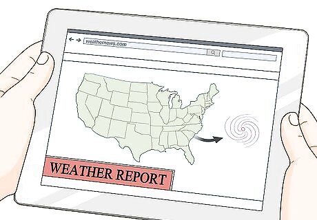 Wait until the storm has passed. Never leave your shelter until you are sure that the storm has passed and that it is safe to follow the next directions. High winds can still be dangerous, so do not go outside if debris is still moving in the air or on the ground. Watch or listen to weather reports to find out when it is safe to come out. If you don't have access to a weather report, wait at least an hour before coming out, if you can. Most tornadoes only last a few minutes, but they can last up to an hour.