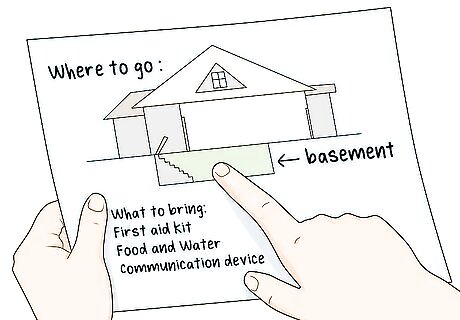 Go over your emergency tornado plan with your family. Talk with your children about what a tornado is and what they can do to protect themselves. Share your emergency plan with anyone who lives in your household. Discuss where you will meet if you are separated. Make sure everyone in the family knows where to go, what to take, and how to be safe if a tornado hits. Teach children to go to the lowest level of a building, get away from glass, and protect their heads during a tornado.