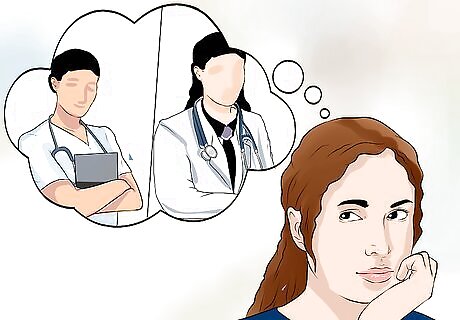 Identify what type of medical position you’re interested in. There are many, many medical field occupations to choose from. You can work with athletes in need of physical therapy or help diagnose hearing issues as an audiologist. Before you prepare for college education, research what might you want to do. There are many different jobs in the medical field: Administration positions — medical billing and coding Assistant positions — medical assistant, physician's assistant Health care support — phlebotomist Nursing positions — trauma (ER) nurse; labor and delivery nurse; hospice nurse; medical/oncology nurse; dialysis nurse; surgical nurse; advanced practice nurse (family nurse practitioner, nurse midwife, Certified Registered Nurse Anesthetists) Doctors — hematologist, general practitioner, oncology, pediatrician, internal medicine, ENT specialist, anesthesiologist Physical therapy — sports medicine, trainers, post-surgery physical therapy Counselor — genetic counselor, psychologist, home aid counselor Technical specialists –– perfusionist, radiographer