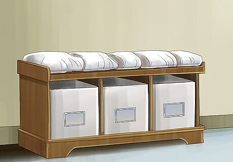 Add a storage bench. If you have the room, it can also be helpful to add storage bench to your entryway. This provides guests with a place to set bags, purses, or presents. A multi-level bench can also provide extra storage for shoes.
