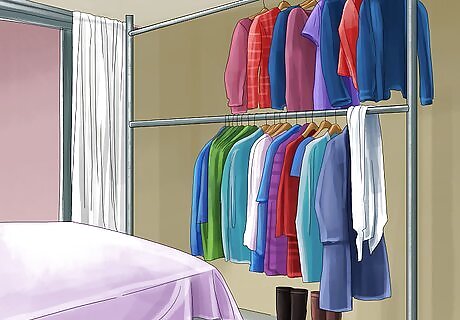 Clear away clutter. When additional people are entering your home (especially during the colder months), you are going to need more space for their coats, shoes, and other items. Get rid of shoes, umbrellas, coats, etc. that can clutter up your entryway. Store these in a closet, bedroom, or basement until your guests depart.