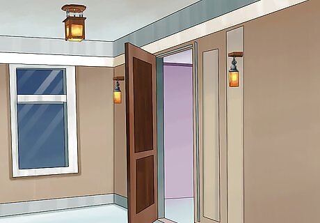 Make sure there is adequate light. Think about the lighting in your entryway. You want to create a warm, flattering glow while providing enough light to enter safely. Consider using two light sources to create this balance. Place a medium-wattage bulb in an available overhead light fixture, then add a standing lamp with softer bulb.