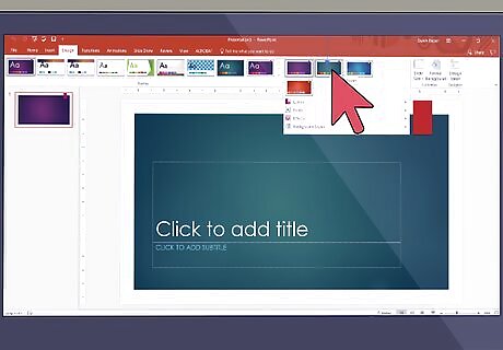 Choose a consistent design template for your slides. Use a consistent font, background, and color scheme across the entire PowerPoint presentation. Feel free to present the information in different ways, such as using a numbered list on 1 slide and an image on another, but don’t distract your audience by constantly changing the underlying design. Use a relatively large sans serif font on all of your slides. This will not only minimize distraction, but also make it easier for people to see the text on your slides. Make sure to have some contrast between the background color and the color of your text. This will make it easier for people to actually see what you write on the slides!