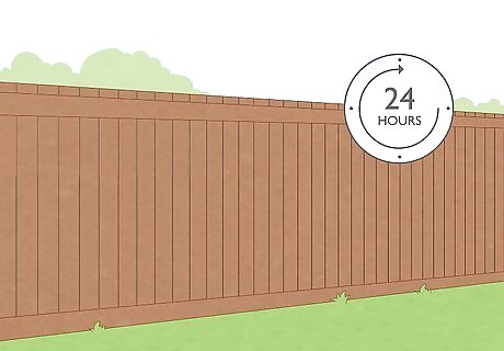 Allow 24 hours for your stain to dry. Try to stain your fence on a clear day without rain in the forecast. Do not allow anything to touch your wet fence for at least 24 hours.