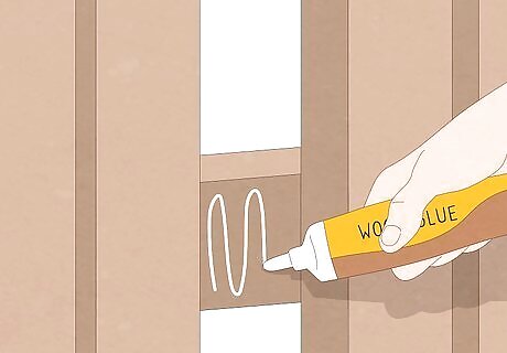 Glue damaged pieces and tighten any loose boards on your fence. If you find any broken pieces on your fence, replace the pieces and apply wood glue and clamp or tape them into place until completely dry. If you use wood glue, allow the glue to dry for 24 hours before staining your fence. Use weather-resistant screws to tighten or replace any loose or sagging boards in your fence. When tightening boards or screwing new boards into place, recess the screw head ⁄4 inch (0.64 cm) into the wood and fill it in with a light colored caulk.