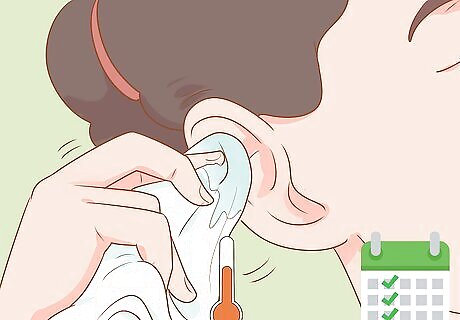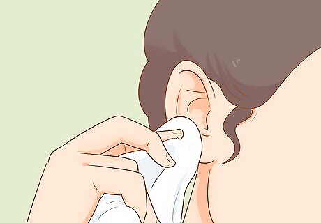 Dry your ears after they get wet. Bacteria that cause ear infections thrive in moist environments, so it's important to keep your ears dry. To dry your ears after swimming or showering, take a clean cloth and wipe your outer ears. Tilt your head so water in your ear drains out.Tip: If you'd rather use a hair dryer, turn the dryer to the lowest setting and position it at least 1 foot (30 cm) away from your ear. Keep the dryer pointed at your ear for about 30 seconds before drying the other ear. Avoid sticking the cloth into your ear canal since this can push softened earwax further into your ear canal.