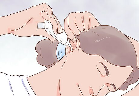 Apply drops to your ears before swimming to prevent swimmer’s ear. Purchase or make an eardrop solution that you can put into your ears before you go swimming. Pour 1 teaspoon (4.9 ml) of the solution into each ear and then tilt your head so the solution drains out. The solution will help your ears dry faster once you get out of the water and it will prevent germs from thriving in your ear.Homemade Ear Drop Solution: Combine ⁄2 cup (120 ml) of white vinegar with ⁄2 cup (120 ml) of rubbing alcohol in a clean bottle. Store the solution for up to 1 year. You should not use the eardrop solution if you have a punctured eardrum. If you don't like using drops, put earplugs in your ears before you go swimming.