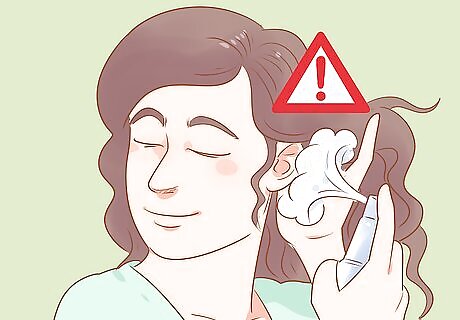Prevent chemicals from getting into your ears. Chemical irritants from beauty products can work their way into your ears and cause inflammation. To protect your ears when you apply hairspray, hair dyes, or products that could get into your ears, place cotton balls into the crook of your outer ear. Remove the cotton once you're done with your beauty regimen. Ensure that you don't push the cotton balls into your ear canal where they can cause irritation.