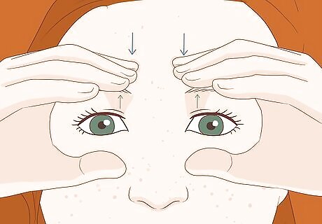 Try facial yoga for forehead wrinkles. Make a C shape with each hand around your eyes, like binoculars. Pull the skin of your forehead down with your index fingers while raising your eyebrows. Hold that pose for 2 seconds. Perform these exercises in front of a mirror to make sure you are doing them correctly. Clean your hands before touching your face.