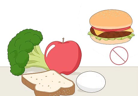 Eat a healthy diet with lots of vegetables and little processed meats. To keep your skin (and the rest of you) healthy, make sure to eat a variety of vegetables every day. Try switching out white bread for whole grains and fruit or dark chocolate for sugary treats. Instead of processed deli meats or hamburgers, try chicken, eggs, or beans. If you don’t eat dairy, make sure you get calcium from other sources like seeds or supplements to support skin health.