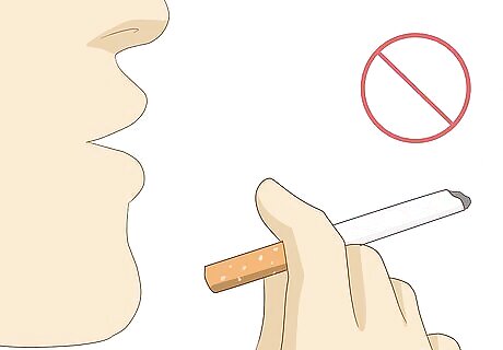 Stop smoking to slow down aging. If you've been thinking about quitting, now is a good time! Not only does smoking cause a whole host of health problems, it also ages your skin faster, leading to more wrinkles on places like your forehead. Talk to your doctor about quitting, and they can help you get on treatments like nicotine patches or pills to help you quit. Join a support group for people trying to quit. They'll help you figure out coping strategies when you get the urge to light up. Find replacements for smoking. For example, if you like to light up at lunch, hang out with your coworkers instead or take a walk.