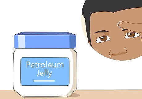 Use a layer of petroleum jelly to hold in moisture and smooth lines more cheaply. For a cheaper option than patches, use petroleum jelly before you sleep. Wash your face first, and leave a bit of moisture on your skin. Get a pea-sized dab on the end of your finger and swipe it across your forehead. Keep massaging it in until it doesn't feel tacky anymore. You could also try coconut oil instead, which will also hydrate your skin.