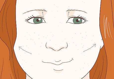 Try the half-smile exercise several times a day. Pretend like you're going to smile or laugh, but don't actually follow through. You should feel your eyebrows lift up slightly and the skin around your ears pull back a bit. This light exercise helps work those muscles. Hold the position for 30 seconds. Relax for a bit and do it again. You can do this as many times a day as you'd like. In general, avoid over-exaggerating all of your facial expressions, which can help reduce the appearance of forehead wrinkles.