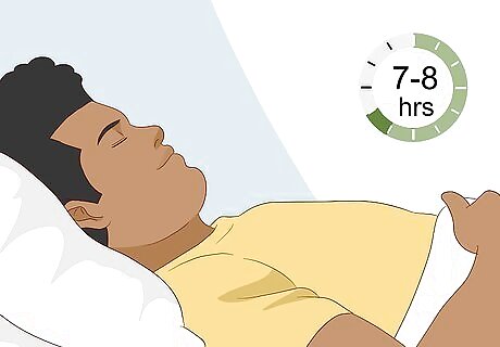 Sleep 7-8 hours a night to encourage healthy skin. Not getting enough sleep is detrimental to your health. It may even cause your skin to age prematurely if you do it on a regular basis. Make sure you're hitting the sheets early enough each night to get the recommended amount of sleep. If you have trouble getting to bed early enough, try setting an alarm an hour before you need to go to bed. That way, you can start turning off your electronics and winding down. Adjust your bedroom to make sure you're getting the best sleep you can. For instance, make sure you're blocking out as much light as possible with curtains and blinds. Also, use a noise-canceling machine if sounds keep you up. You may also want to kick your pets out of your bedroom, as they can disrupt your sleep.