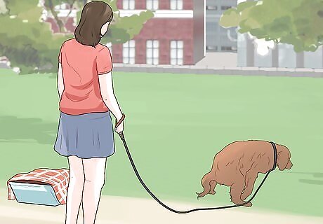 Avoid letting dogs go to the bathroom where children play. Humans can easily get hookworms from infected feces or contaminated ground. To protect yourself and others, do not let dogs or puppies defecate in areas where children play. This includes playgrounds, sandboxes, and beaches. Take them to a designated potty spot before going for walks in these areas. You should cover children's sandboxes when they are not being used to discourage roaming cats and dogs from using the bathroom in it. If the dog or puppy does defecate in these areas, clean the stool up promptly and thoroughly.