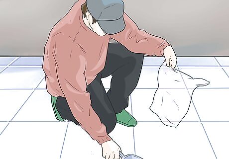 Pick up feces. The main step to prevent hookworm infections from spreading is to pick feces up immediately. This keeps any eggs from being able to develop into infective larvae. Fecal material should be picked up immediately after a dog defecates and disposed of in the garbage. If the dog or puppy defecates on a surface that can be cleaned, after picking up all fecal material, it can be disinfected with a dilute bleach solution. This can be made by mixing one part of bleach with nine parts of water. Make sure to spot test the surface to avoid bleaching the material.