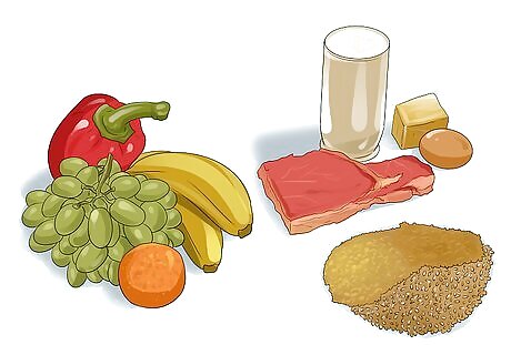 Eat a well balanced diet. Please refer to the Food Pyramid or suggestions of nutritionists if you are unsure about what you should be eating each day. Normally, you should have 3-5 servings of fruits and vegetables, 5-8 servings of grains, 2-4 servings of protein, and 2-4 servings of dairy each day. Remember to eat three meals a day to sustain your energy and keep your sodium levels in check.