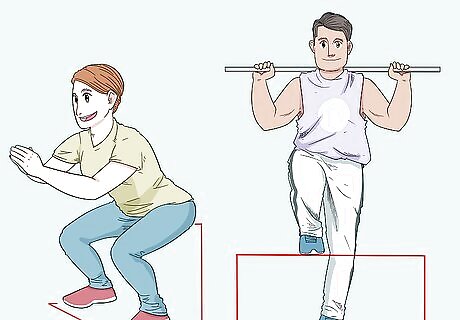 Incorporate stretching into your training. While you may be tempted to focus all of your energy on building your strength and endurance, it's important to focus on flexibility as well. Incorporating stretches into your regular exercise routine will help protect you from injury. Stretching can also help you improve your range of motion, which can make you a better athlete, so it has multiple benefits. When deciding what stretches you should do, think about the injuries that are most common for people who play your sport, and focus your stretches on those muscle groups. Also consider which muscles are tight on your body. Tight muscles are more susceptible to injury, so work on increasing their flexibility. No matter what sport you play, be sure to stretch the major muscle groups, which include the calves, thighs, hips, low back, neck, and shoulders. If stretching hurts, back off right away. You should never push yourself past the pain, as you are likely to cause an injury.