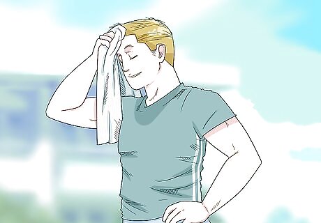 Avoid dehydration and heat stroke. Heat-related injuries are an often overlooked risk of playing sports, but they are easy to prevent. Be sure to stay as cool as possible and drink plenty of fluids before, during, and after the game. If you are playing outside in the warm weather, wear a hat to protect yourself from the sun. Symptoms of heatstroke include dizziness, fatigue, headache, confusion, nausea, paleness, weakness, weak pulse, and heavy sweating. If you experience any of these, stop playing the sport immediately, move to a cool area, and drink water. You may need medical attention if your symptoms do not go away after a few minutes.