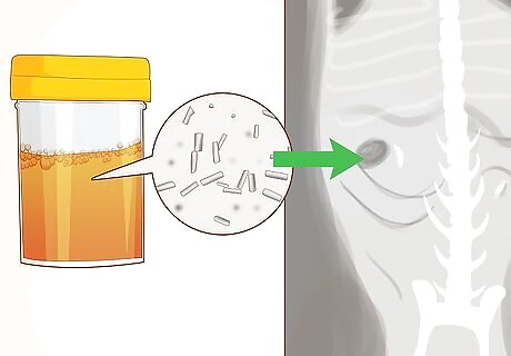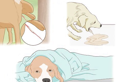 Recognize the signs and symptoms of kidney stones. In some cases, there are no obvious signs that a dog has a kidney stone. Kidney stones might be found during an x-ray or ultrasound for another condition in the affected dog. In other cases, there are certain clues or signs that might make a veterinarian suspicious that a dog has a kidney stone. These include: Blood in the urine Frequent urination and increased drinking Recurring urinary tract infections Loss of appetite Vomiting Weight loss Difficulty urinating Lack of energy Painful belly