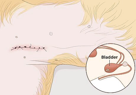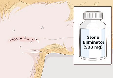 Understand the common treatments for kidney stones. If you think that your dog has a kidney stone, you will need to take him to the veterinarian as soon as possible. Do not wait or the stones may become much worse. Treatments for kidney stones vary depending on the severity of the stones. Treatments may include medication, dietary changes, and even surgery. Keep in mind that if your dog requires surgery, then he may need to be hospitalized until he recovers from the surgery. If your dog has stones and you don't want it to go through a surgery, there's a procedure called lithotripsy, in which the vet uses lasers to break down the stones.