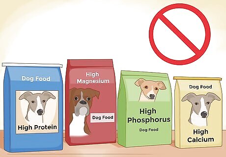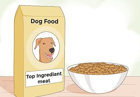 Choose a high-quality commercial dog food. Look for brands that list meat (not meat by-products) as the top ingredients on the labels or ask your veterinarian for advice. While it is not necessary to put your dog on a special diet to prevent kidney stones, you should still feed your dog a food that meets all of his nutritional needs. These needs will depend on your dog’s breed, age, and other factors. Talk to your veterinarian if you are not sure how to choose a food for your dog.