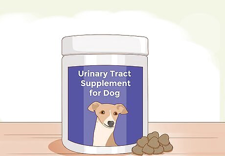 Consider urinary tract health supplements. There are supplements that you can give your dog to help with urinary tract health. These include cranberry extracts, which are known to be beneficial for urinary tract health. Cranberries help prevent bacteria in the urine from latching onto the urinary tract lining. These supplements are available in pill, capsule, or a chewable form to supplement your dog’s regular diet. If your dog has a medical condition, ask your veterinarian before giving any supplement to your dog.