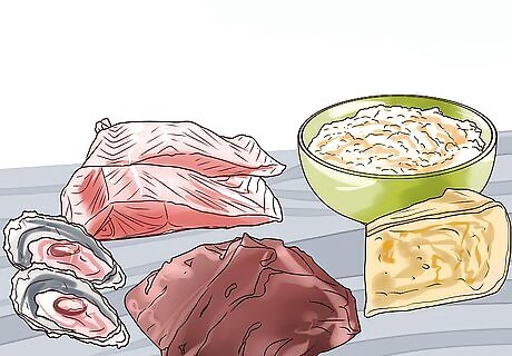Eat foods containing B12. If you don't consume enough vitamin B12, your bone marrow may have difficulty making enough platelets. Vitamin B12 is also essential to red blood cell formation. The recommended daily intake of B12 varies, but adults should usually have between 2.4mcg and 2.8mcg daily. A full list of recommended daily allowances by age can be found at the National Institutes of Health website here. B12 is commonly found in animal products, so vegetarians and vegans may need a supplement. Good dietary sources of B12 include shellfish, beef liver, fish, fortified cereals, and dairy products.