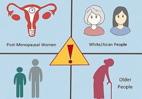 Know what risk factors you can’t change. There are some risk factors for developing osteoporosis that you can’t do anything about. Studies suggest that the following groups are at a higher risk for osteoporosis: Women, especially post-menopausal women or women who have had hysterectomies White and Asian people Short or small-framed people, especially thin people People with a family history of osteoporosis Older people