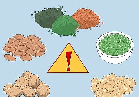Be aware of phytates. Phytates, or phytic acid, interfere with your body’s ability to absorb calcium from the foods you eat. They’re commonly found in grains and legumes, such as wheat bran and beans, as well as nuts like hazelnuts, walnuts, almonds, and cashews. These foods are very good for you, so this doesn’t mean you shouldn’t eat them. There are some things you can do to reduce the phytate level in the foods you eat. Soak dried beans in water for several hours, then cook them in fresh water. If you eat 100% wheat bran, it should be consumed 2 or more hours before or after taking calcium supplements. Fermentation and malting reduce phytate levels, so breads such as sourdough or other types that use fermented or malted grains pose no problems to calcium absorption.