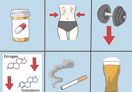 Know what risk factors you can change. You can take the steps in this article to affect many of these risk factors. People have a higher risk of osteoporosis if they: Have anorexia nervosa Don’t get enough calcium and vitamin D Have low estrogen and/or testosterone levels Use certain medications, such as corticosteroids Don’t get enough weight-bearing activity Smoke Drink too much alcohol