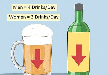 Watch your alcohol consumption. Heavy drinking is unhealthy for many reasons, and it can cause bone loss. Being intoxicated may also put you at a higher risk of breaking a bone. The National Institute on Alcohol Abuse and Alcoholism states that “low-risk” or “moderate” drinking is the safest way to avoid damage to your health from alcohol. This is defined as no more than 3 drinks on a given day, and no more than 7 per week for women. For men, it’s no more than 4 drinks on a given day, and no more than 14 per week.