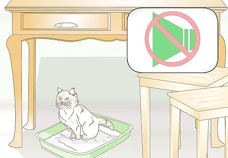 Place litter boxes in safe and quiet areas. In order to promote frequent urination, you should place your cat's litter boxes in places that give it a bit of privacy. Placing the litter boxes in noisy or busy areas does not allow for your cat to relax and do its business. This does not mean that your cat's litter boxes should be in out of the way places, far away from the core of your home. It simply means that your cat probably needs a bit of privacy, so place litter boxes in private corners or out of sight of the rest of the home.