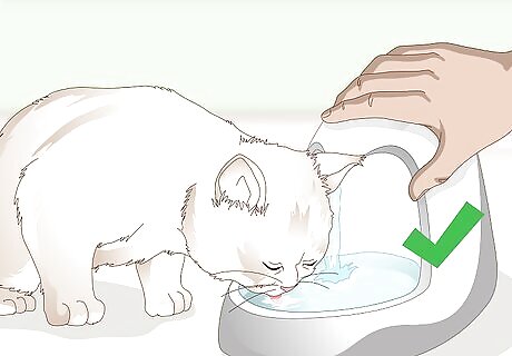 Make water appealing to your cat. It is important that your cat's water is appealing, so that it drinks often. Clean your cat's water bowl frequently to avoid bacteria buildup. Also, change the water daily to assure that the water tastes good to your cat. If your cat is hesitant to drink even clean, fresh water, you may need to make it even more appealing. Try getting a pet drinking fountain to entice it to drink more water. The running water in a drinking fountain will often lure even cats that are not normally interested in drinking water.