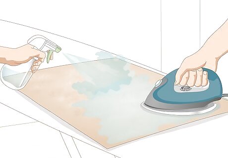 Spray your burlap with water and iron it until it's flat. Lay the piece of burlap out on your ironing board. Set your iron to the hottest setting and let it heat up. Spray any wrinkled areas with water from a spray bottle. Iron over the wrinkles until they are flat. It’s better to spray with a spray bottle rather than use the steam setting on your iron, because then you can specifically target the wrinkled spots. It’s important to iron your burlap before you measure or cut it so that your measurements are more accurate.