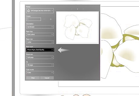 Print your design on a photo setting. Adjust the settings on the print preview to select the “photo setting,” so that the printer uses more ink. Make sure the paper size is the same as the burlap you prepared, rather than photo-sized. Then, press print. When printing on the photo setting, your printer will work more slowly, so be patient.