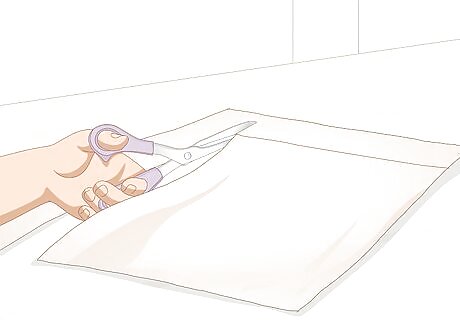 Cut out the burlap with fabric scissors or a rotary cutter. The blade should very sharp to prevent fraying. Cut along the straight line with fabric scissors, or put the burlap down on a cutting board and cut the line with a rotary cutter. If you’re a kid, ask an adult for help for this step.
